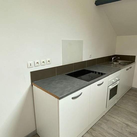 Studio 1 pièce 20m2 Bruay la Buissière. ORPI BETHUNE vous propose ce studio de 23m² idéalement situé sur la commune de Bruay La Buissière. Il est composé d'une entrée, une pièce de vie avec cuisine aménagée et partiellement équipée (four et plaque), et une salle d'eau avec WC. Proches de toutes commodités, arrêt de bus au bas du bâtiment. Chauffage électrique. Disponible dès le 2 mars. DPE en cours. Loyer mensuel de 380€ de 20€ de charges (eau), dépôt de garantie 380€, honoraires agence 220€. Vous n'avez pas de garant(s) ? Testez ...