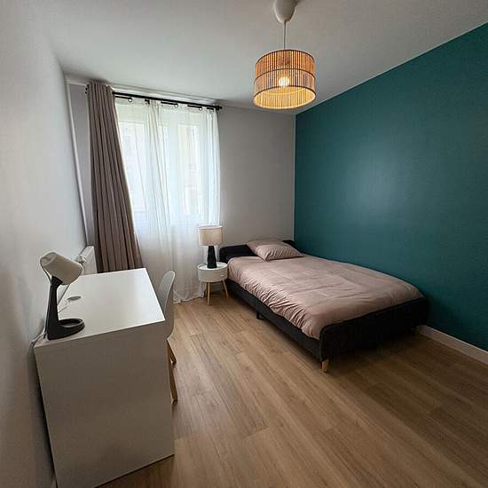 UNIQUEMENT CHEZ HUGUES IMMOBILIER Résidence Les Olympiades Rue Eugène Maës Colocation haut de gamme dans un appartement entièrement rénové, meublé et aménagé par architecte ! Chaque espace a été pensé pour offrir confort, modernité et convivialité. Composition : Belle pièce de vie lumineuse avec cuisine aménagée et équipée ouvrant sur un balcon, Dégagement avec rangements, 5 chambres confortables, 2 salles d'eau, 1 WC, Cave incluse. Loyer par chambre : 420 Euro/mois Forfait de charges : 100 Euro/mois (comprenant charges communes, électricité...