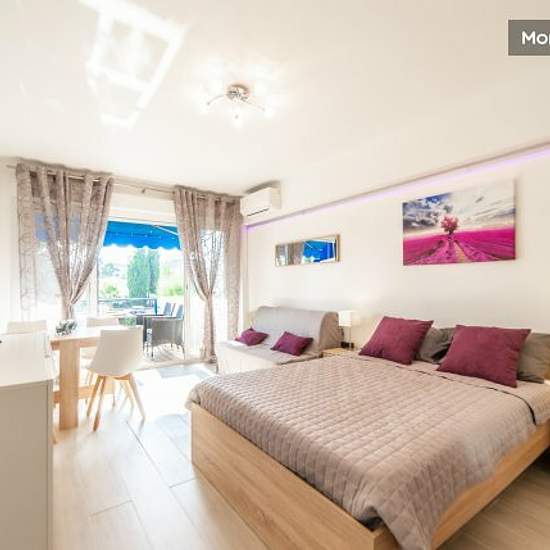 Large and bright renovated studio located in the heart of Cagnes sur Mer, 300 meters from the beaches and facing the racetrack in a quiet area with all shops and restaurants. Well exposed flat entirely renovated in a secure and well maintained residence. Decorated and arranged with taste, it offers all the modern comfort. It is composed as follows: An entrance hall, a fully equipped kitchen (oven, microwave, dishwasher, etc.) with all the utensils for cooking, a large living room with a double bed and a sofa bed opening onto a balcony for br...