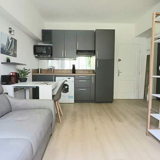 Location meublée d'un studio de 19m² situé au Palais Provence. Appartement situé en entresol d'une copropriété luxueuse avec gardien assermentée. Parking collectif. Ce bien est composé d'un séjour avec canapé convertible (couchage quotidien), une cuisine équipée (réfrigérateur, lave-linge, four à micro-ondes, plaque de cuisson) Une salle de douche avec wc. Loyer hors charges : 530,45€ Provision sur charges : 30€ Taxe ordures ménagères : 6.35€ Loyer charges comprises : 566.80€ Dépôt de garantie : 1060€ Honoraires locataire : 247.26€