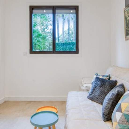 Situé dans un quartier calme de Cannes, à 10 min à pied de la plage, ce studio moderne et climatisé avec parking est idéal pour accueillir 2 personnes. Proche des commerces et des transports, ce logement agréable est parfait pour profiter du soleil et de l'air marin. Ce studio fonctionnel et neuf de 17 m², situé au rez de chaussée d'une résidence sécurisée, est composé de : - un espace de vie charmant avec un canapé-lit confortable, - une cuisine ouverte équipée (bouilloire, four, plaques de cuisson, frigo) - une salle de douche, - aspirateu...