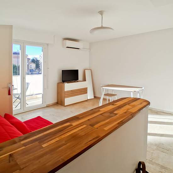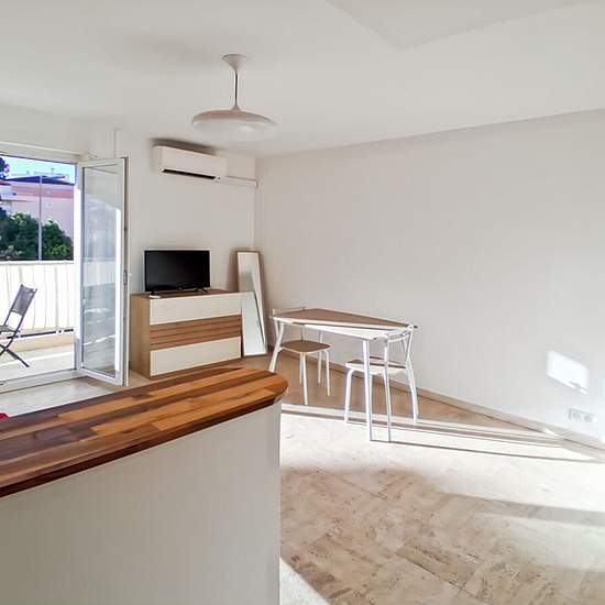 CANNES, quartier "Gallieni", appartement de type studio à louer meublé à l'année, exposé à l'ouest, comprenant une pièce principale ouverte sur une terrasse de 8 m², une cuisine aménagée et équipée, une salle d'eau avec wc. Loyer : 620 € + 100 € de provision sur charges (chauffage, eau froide et eau chaude aux compteurs) + 15 € de taxe d'ordures ménagères. Dépôt de garantie : 1240 € Les informations sur les risques auxquels ce bien est exposé sont disponibles sur le site Géorisques : Selon la qualité du preneur à bail, les honoraires d'agen...