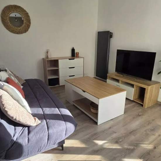 Location studio meublé 28,5 m² +Terrasse 9m2+parking CERGY (95800) • Appartement meublé (Cuisine attenante à la pièce de vie) situé au 2ème étage avec ascenseur d'une copropriété de 1995. • Quartier CERGY LE HAUT. Studio situé sur la place de la Gare à 100 mètres de la gare - RER A et ligne L, Bus. Vous trouverez à moins de 100 m de nombreux commerces comme : Cinéma, restos, salle de sports et super marché, etc. • Refait entièrement, il comprend une pièce de vie de 22,48 m2 (séjour 13,47 m2+chambre 9,01 m2) avec un canapé lit convertible, té...