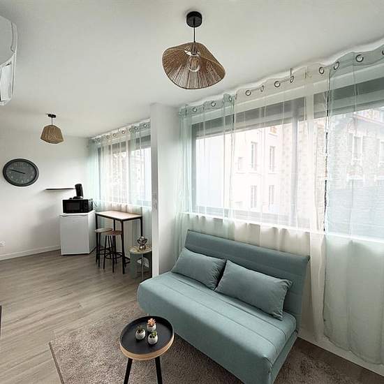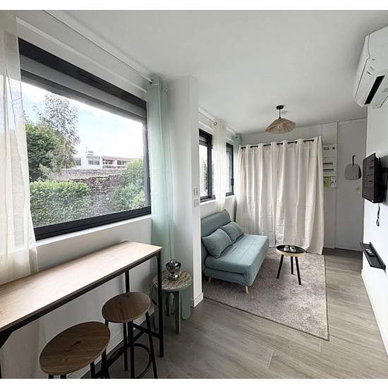Trés bel appartement de type F1 meublé , lumineux situé au premier étage, comprenant une entrée, un séjour-cuisine aménagée et équipée, une salle de bain et wc séparés. Charges correspondants à la production d'eau froide, taxe sur les ordures ménagères, entretien et électricité des communs, avec régularisation annuelle. Disponible au 16 mars 2026. Contact par mail à EMAIL ou par téléphone au 20;