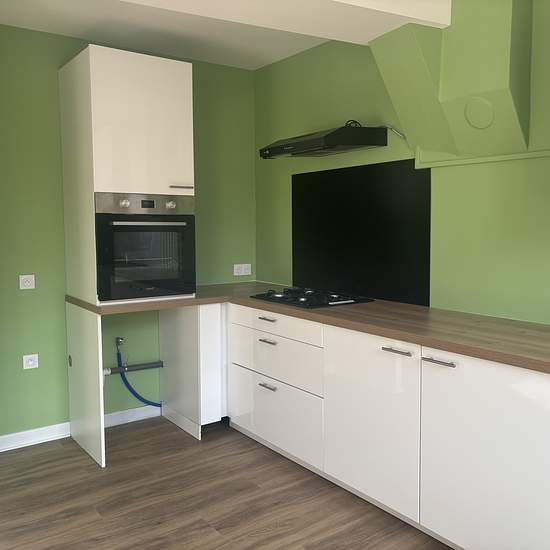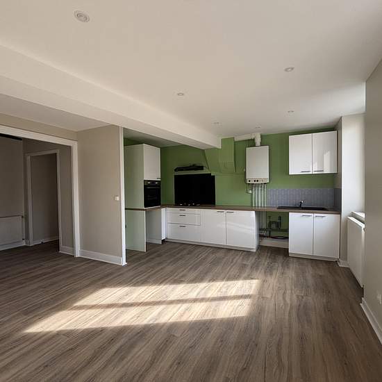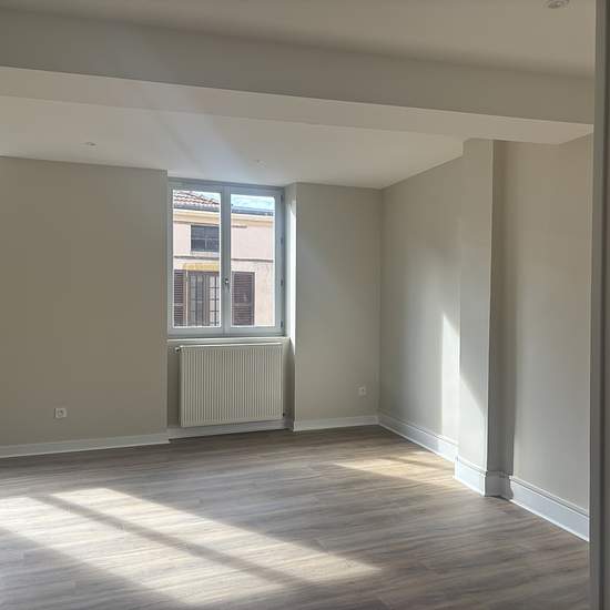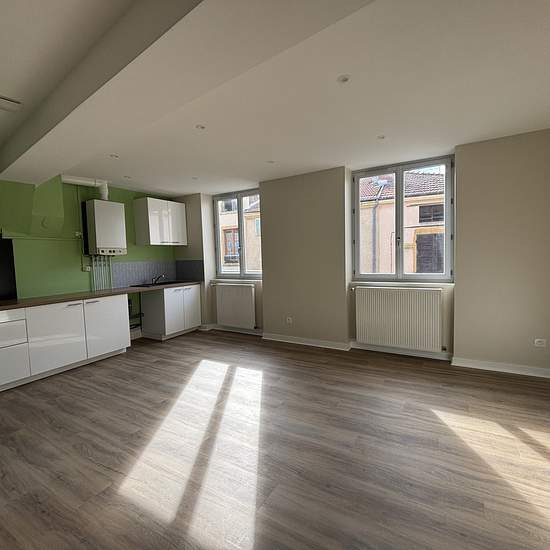CHARLIEU rue Jean Morel - Appartement au deuxième étage de type 2 entièrement rénové d'une surface de 41,56 m2 habitables comprenant une entrée, un séjour donnant sur cuisine équipée (four, plaque de cuisson, hotte), une chambre mensardée, une salle d'eau et un W.C. Chauffage central muni d'une chaudière au gaz. Disponible de suite. Loyer mensuel: 460,00EUR FA: 331,20EUR TTC