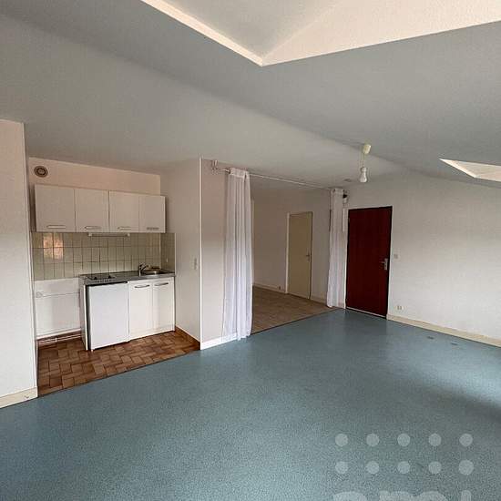 Studio de 43.68 m² situé dans une résidence calme avec ascenseur et interphone, comprenant séjour avec coin nuit et coin cuisine équipée, salle de bains avec WC, dressing et rangement. Parking extérieur avec place privative dans la cour de l'immeuble. Disponible de suite.