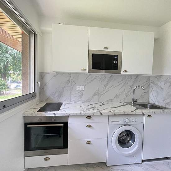 A louer, dans une résidence sécurisée, en centre ville, à deux pas du métro L13 "Mairie de Clichy", grand studio meublée composé d'une entrée avec grand placard, un séjour baigné de lumière, une cuisine aménagée et équipée (four, plaque, machine à laver, réfrigérateur), une salle d'eau avec wc. Résidence avec gardien. Chauffage et eau chaude collectif (inclus dans le loyer). Loyer 1005 euros Charges Comprises. Honoraires de location: 480.6 euros Pour plus d'information contactez nous au 19