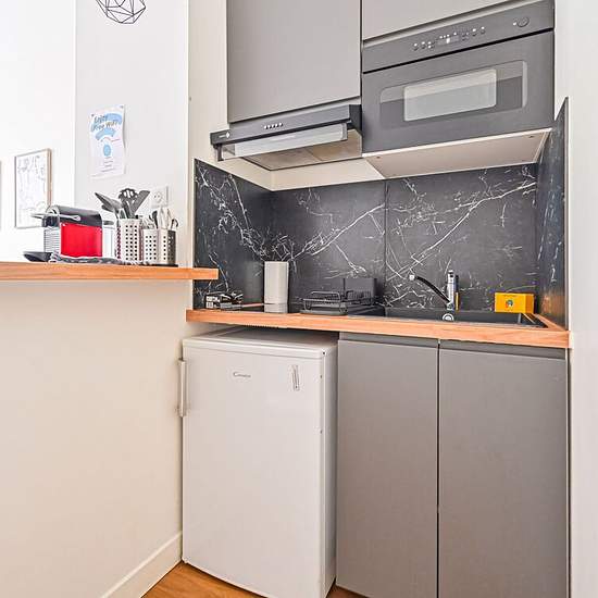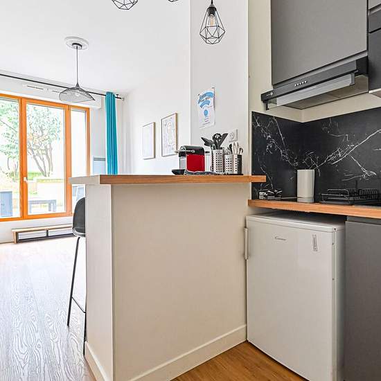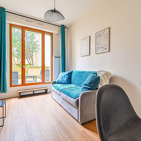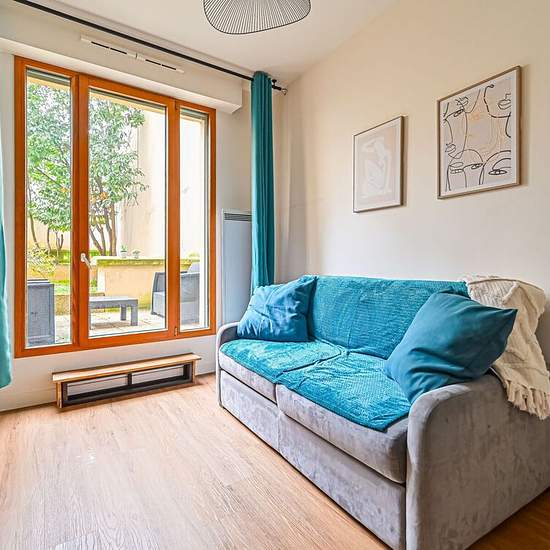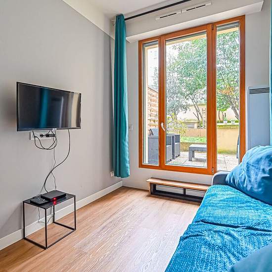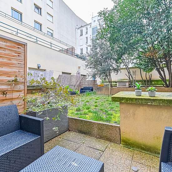 Apartment for Rent. A GEM! Rue Martre, right by the Mairie de Clichy metro station, we offer a beautiful 21 m² studio on the garden level, facing the courtyard, very bright and quiet, comprising a main room, kitchenette, shower room with WC, and the cherry on top: a lovely 7.5 m² terrace.