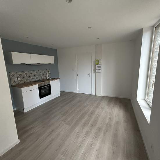 Appartement situé au 1er étage sans ascenseur comprend : un séjour, une cuisine équipée (plaques,four,hotte) américaine, une chambre avec salle de bains, WC séparé. Appartement entièrement renové situé sur la place Rombault. Double vitrage, chauffage individuel électrique. Loyer : 440 EUR Charges : 40 EUR (eau froide et taxe d'ordures ménagères) Honoraires : 330 EUR + 100 EUR d'état des lieux par huissier. Disponible le 29/01/2026. Garantie VISALE exigée. Lemercier-immobilier.com