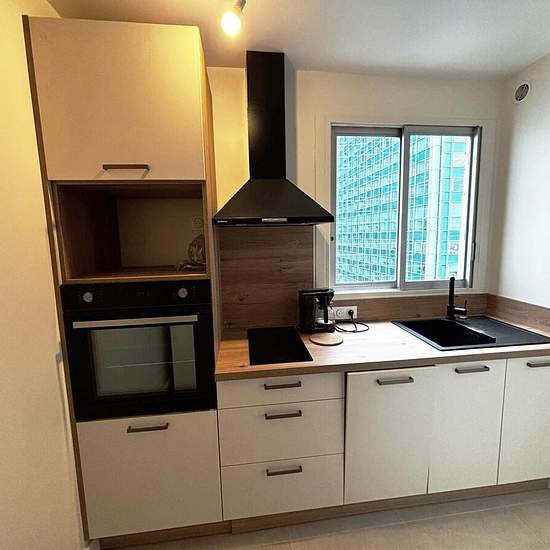 COURBEVOIE / LA DEFENSE - Terrasse des Reflets - GRAND STUDIO REFAIT A NEUF de 38.39m² au 14ème étage avec ascenseur, dans copropriété sécurisée avec gardien, belle exposition, lumineux et calme, offrant une entrée, grand séjour d'env 26m² (avec lit armoire inclus) donnant sur balcon env 4m², cuisine séparée aménagée et semi équipée, salle de bains avec WC. Chauff / eau chaude inclus. Idéalement situé - à 5 min à pied - entre Esplanade de La Défense (métro ligne1) et Gare de la Grande Arche (RER, metro, bus), proximité toutes commodités. Au ...