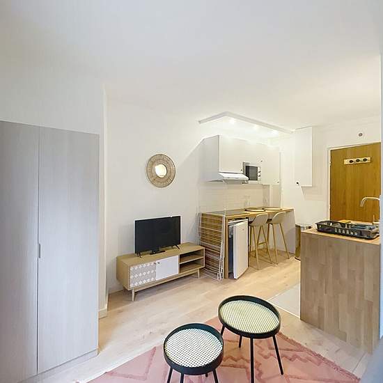 Courbevoie - Rue Molière. In a residence with a caretaker and garden, pleasant furnished studio comprising an entrance opening onto a fitted and equipped kitchen, main room, shower room with WC. Central heating and hot water. Available immediately. Rental contract fees: €236.85 including VAT if the lease is under Law 89.