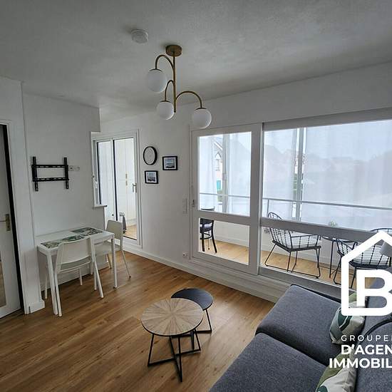 RESIDENCE LE CAP HORN, secteur port de pêche, charmant studio meublé avec goût comprenant entrée, placard aménagé, pièce de vie donnant sur loggia exposée OUEST, coin cuisine aménagé et équipé (plaque de cuisson vitrocéramique, réfrigérateur, micro-ondes, machine à laver), salle d'eau avec wc. Disponible le 1er décembre 2025 GLI propriétaire