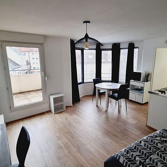 DIJON / WILSON En 3 -ème étage avec ascenseur agréable studio meublé de 25m² en parfait état comprenant une pièce de vie baignée de lumière, une kitchenette, une salle d'eau avec wc et machine à laver et surtout une jolie terrasse plein soleil. Chauff individuel élec. Soumis à GLI. DPE /E. loyer 550 euros CC. Hono agence 275 euros. AGENCE CADR'IMMO Copropriété de 25 lots - dont 15 lots habitation.(Pas de procédure en cours).