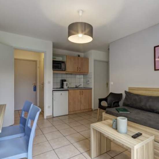 Au coeur du Pays de Gex, notre hôtel-résidence bénéficie d'un emplacement idéal, aussi bien pour vos séjours professionnels que touristiques. L'appartement est extrêmement bien placé, à quelques minutes du centre-ville de Divonne-les-Bains, à deux pas du Casino, des Thermes et du parcours de golf. Entre les forêts du Jura et le Lac Léman, la région offre une foule de décors naturels à couper le souffle. Composé d'une grande pièce à vivre avec canapé-lit (140*190) et cuisine équipée, d'une chambre avec lit double (140*190) et d'une salle de b...