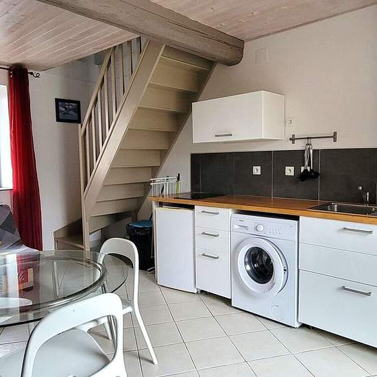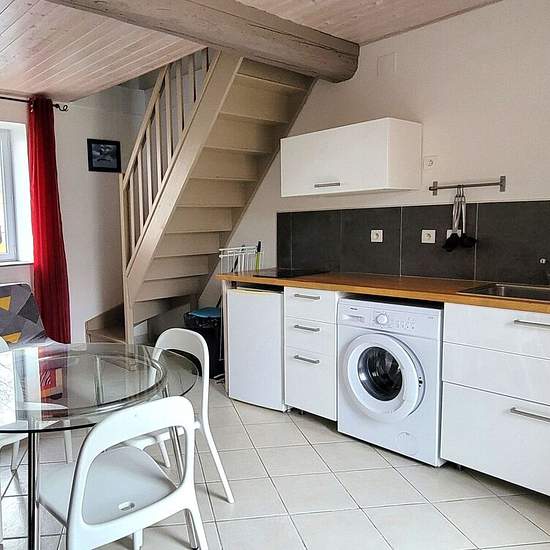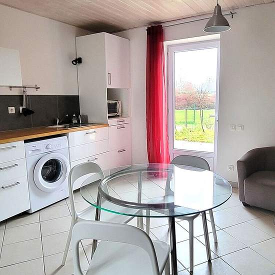 Appartement T1 bis meublé À Louer. Ecuisses, village proche gare TGV, dans impasse, appartement en duplex de 32.31m² de type T1 meublé composé au rdc d'une cuisine équipée ouverte sur pièce de vie avec porte-fenêtre sur terrasse avec 1 cour (possibilité de se stationner) . A l'étage 1 chambre , et une salle de douche avec WC . Double vitrage pvc, VMC, isolation intérieure. Stationnement facile car parking à proximité. Libre de suite Loyer: 390€/mois dont 10€ de provisions de charges pour les ordures ménagères.