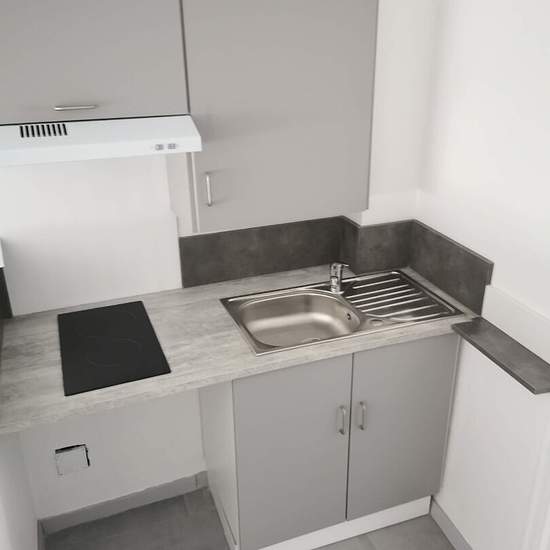 Dans petit immeuble, bel appartement en RDC entièrement rénové comprenant une pièce principale avec cuisine équipée (2 plaques), salle d'eau, WC. 1 place de parking. Eau dans les charges.