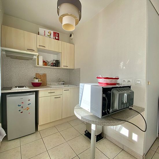 Beau studio de plus de 28 m² situé dans une résidence calme et sécurisée, à proximité immédiate du centre-ville. Il se compose d'une entrée avec placard, d'une cuisine ouverte sur le séjour, aménagée et équipée (hotte, plaque de cuisson et réfrigérateur), ainsi que d'une salle de bains avec WC. Vous bénéficierez également d'un balcon et d'une place de parking privative. Les charges comprennent l'entretien des parties communes ainsi que les provisions sur l'eau froide. Disponible à partir du 30 avril