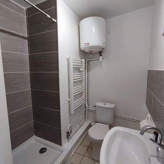 Studio centre-ville d'Evron, proche de la basilique. Situé rue Sainte Gemmes, ce studio refait en 2023 se compose d'une pièce principale avec un clic-clac, un bar, une kitchenette et d'une salle d'eau. Equipements annexes : vaisselle/couverts, plaque de cuisson induction (avec casseroles/poêles), micro-onde. Le chauffage est électrique (convecteur dans la pièce principale et sèche serviette dans la salle d'eau). Le loyer hors charges est de 300€. Les charges mensuelles sont de 75€ comprenant l'entretien des communs et l'électricité (et donc ...