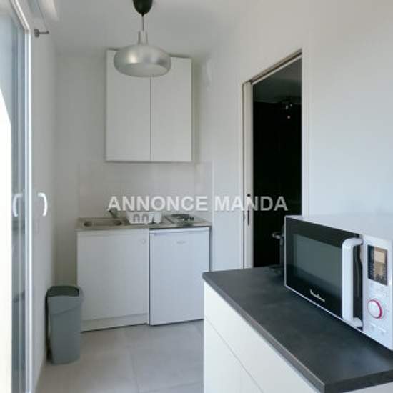 Logement Manda ! Ce T1 meublé en location est situé 4ème et dernier étage avec ascenseur ainsi qu'une grande terrasse plein sud pour profiter pleinement du soleil. Le couloir d'entrée dispose d'un rangement à chaussure et d'un visiophone. La pièce de vie dispose d'un canapé lit, d'une table basse avec plateau permettant de l'utiliser comme table, d'un meuble TV avec TV 50'', d'une table avec deux chaises et d'un grand dressing de rangement. Une grande baie vitrée donnant accès à la terrasse avec des volets roulant électrique. La cuisine disp...