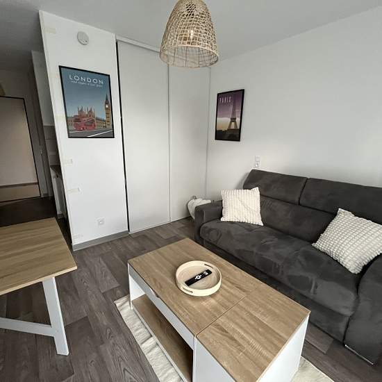 ** RENTREE GAGNANTE: 100EUR OFFERTS SUR 4 MOIS ** *offre valable pour entrée avant le 15 janvier 2026* A la location ce studio meublé dans une résidence neuve. Il est composé d'une entrée, d'une pièce à vivre avec cuisine équipée (évier inox, plaque 2 feux, hotte, meubles hauts et bas, réfrigérateur table top), d'une salle d'eau aménagée avec WC. Il bénéficie d'un parking sous sol. Les +: - Eau Chauffage et Wifi compris dans les charges* - salle de coworking , salle de sport et salle commune avec cuisine climatisée. -A proximité des transpor...