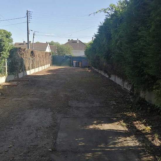 GARGENVILLE en enttepot de 200 m² , une partie a usage de stokage une bureau , sanitaire douche wc . Cour de 150 m² . Disponible .