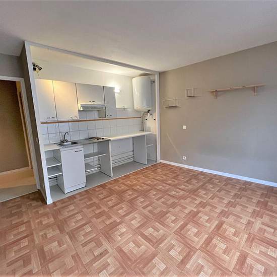 Saintville Habitat offers this pleasant studio located in the center of Gonesse, in a private and very well-maintained residence, on the first floor, comprising: entrance with closet, living room with fitted kitchen area, bathroom with WC. A private parking space in the residence's outdoor courtyard. Roller shutters. Available immediately. Charges include: cold water and building maintenance. Heating and hot water: individual electric. Security deposit: €675. Agency fee: €305.