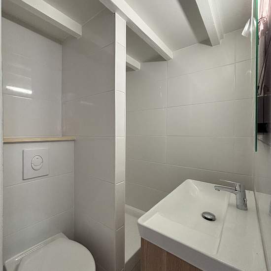 Grenoble, 4 cours de la libération, studio de 9 m² ( + 5.20 m²) entièrement rénové au 1er étage dans cour, comprenant une mezzanine, une kitchenette, une salle d'eau. Chauffage ind élect. Loyer 385€ + charges 10€ - honos 341€ dont 27€ frais edl - dg 385€. Immobiliere victor hugo .