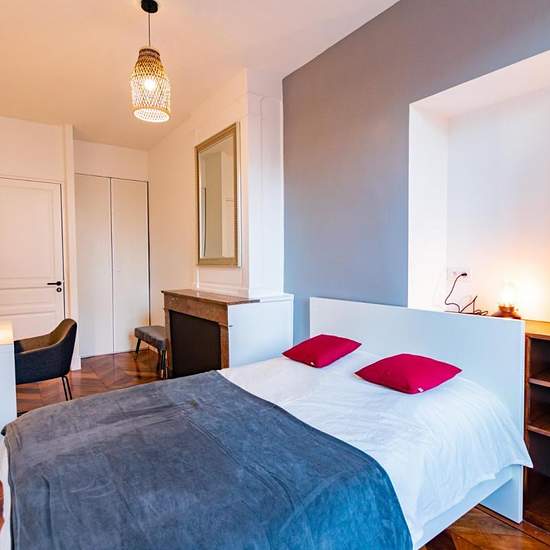 Chambre disponible à retrouver sur la visite virtuelle ci-dessus : n° 5. Colocation dédiée aux actifs. L'appartement de 150 m², situé Hyper-Centre rue Servan, propose 6 chambres dans un confort optimal. Entièrement rénové meublé avec goût. L'équipement complet (vaisselle, casseroles, ustensiles, petit et gros électroménager) permettra aux cuisiniers amateurs de se découvrir une nouvelle passion. Chaque colocataire dispose d'un placard privatif pour ses denrées alimentaires. Une grande table permettra aux colocataires de se retrouver et parta...