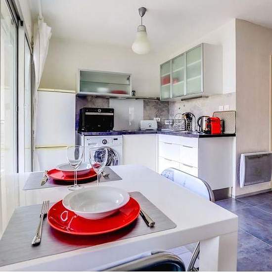 Appartement de 29 m² à louer sur Grenoble Studio lumineux, 2 balcons, dans immeuble de standing, 2ème étage avec ascenseur, vigik, interphone rue calme, quartier Europole Berriat, proche gare, GEM, Palais de Justice, IUT1, CEA, Minatec, IFM… proche commerces, tram A (St Bruno ou Berriat le magasin) tram B (Palais de Justice) Une grande pièce avec placard, 2 portes-fenêtres sur petits balcons Coin cuisine équipé : vaisselle, frigo-congélateur, micro-ondes / four, domino vitrocéramique machine à laver, Canapé-lit confortable, table basse, bure...