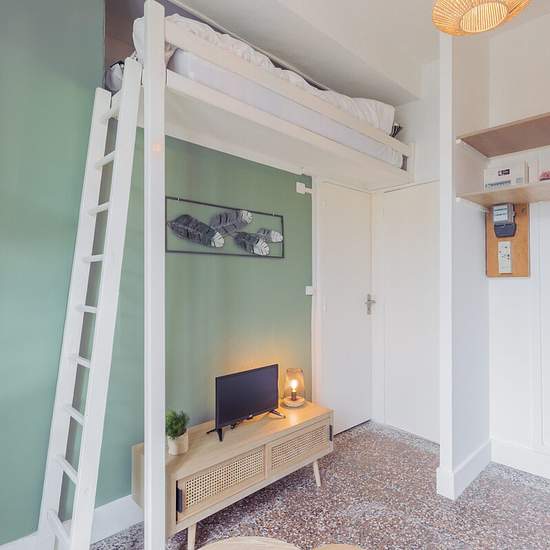 ESTACADE - Studio DISPONIBLE LE 01/03/2026 3 Avenue de Vizille 38000 Grenoble Studio de 14 m2, au 2ème étage sans asc., entièrement meublé et équipé. Pièce de vie, cuisine, rangement, lit mezzanine, salle de bains avec wc. Canapé lit convertible Loyer : 450 € / mois (hors électricité et eau) Dépôt de Garantie : 880 € , 2 mois de loyer HC Frais d'agence : 182 € TTC DISPONIBLE LE 01/03/2026