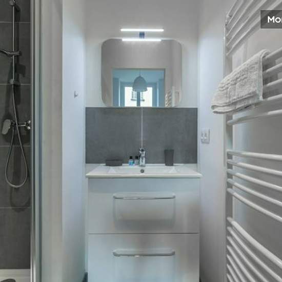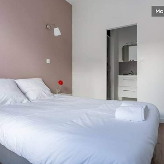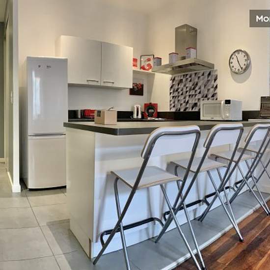 Ideally located, at the foot of the tram, of the market of the Boom, 150 m from the Mac Do! Apartment completely renovated, all comfort and fully equipped. This T2 is ideally located, on the 1st floor of the building, about ten minutes walk from the station or the city center. It is served by the Tram that will take you wherever you want. Everything is nearby: shops and restaurants The living room is very nicely decorated with a sofa bed and everything you need for your comfort. The bedroom is extremely quiet, it overlooks an interior garden...