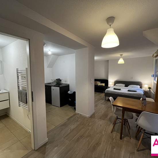EN EXCLUSIVITE CHEZ AM IMMOBILIER Dans le centre de Guebwiller, découvrez cet appartement entièrement refait à neuf dans une petite copropriété, ce studio meublé composé d'une belle pièce de vie, d'un espace kitchenette, d'une salle d'eau ainsi qu'une terrasse. disponible immédiatement Loyer de base 430 €/mois. 15 €/mois de charges forfaitaires. Dépôt de garantie 860 €. Classe énergie B, Classe climat B Montant moyen estimé des dépenses annuelles d'énergie pour un usage standard, établi à partir des prix de l'énergie de l'année 2023 : entre ...