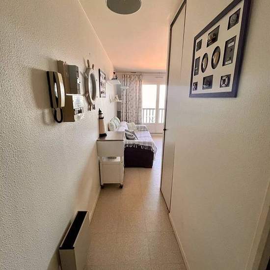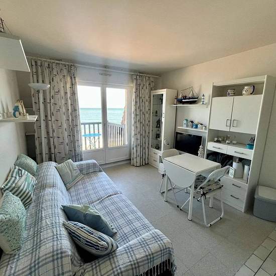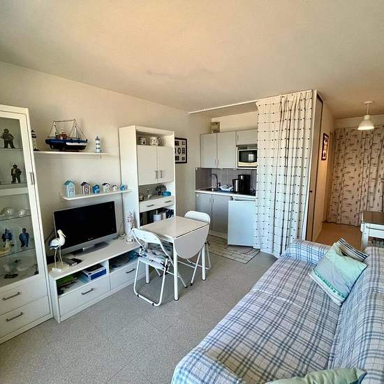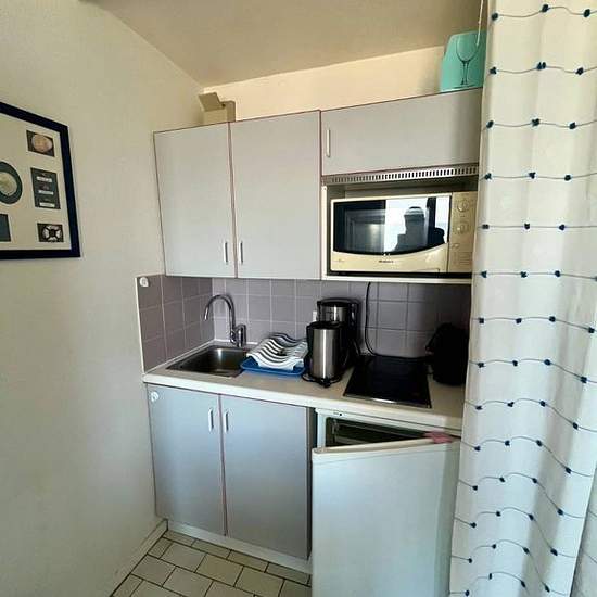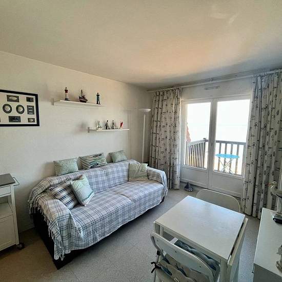 Ce studio cabine, d'environ 21 m2, situé au 3ème étage avec ascenseur se trouve dans une résidence en Front de mer et en accès direct plage. Il se compose d'une entrée distribuant une cabine avec lits superposés, une salle de bain avec wc et une pièce de vie (canapé convertible) avec un coin cuisine et un accès balcon vue mer. Place de parking.