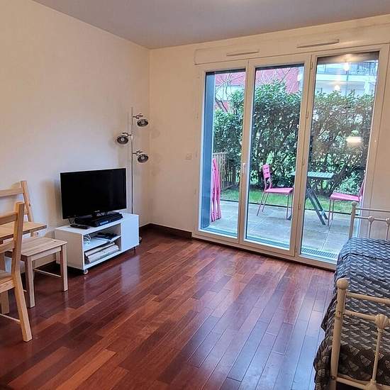 Studio meublé / Fort d'Issy. 59 Promenade du Verger, au calme dans le Fort numérique (commerces, piscine) et à 10'du Métro Mairie d'Issy L12 et de la ligne N (gare de Clamart), dans un immeuble BBC 2013, Studio meublé en rez-de-jardin de 27 m² avec terrasse de 16 m² et parking (sous-sol). Chauffage et eau chaude/froide collectifs (géothermie) Dépôt de garantie 1800,00 €. Honoraires de location 397,46 €TTC. Disponible de suite.