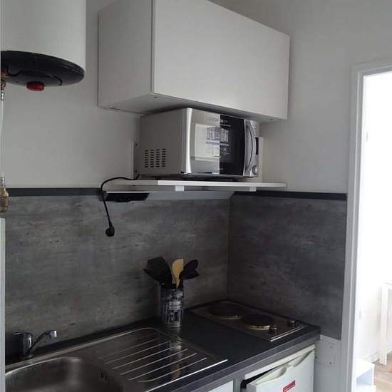 A Istres, loue studio meublé rénové et très bien agencé de 16m2 avec cave privative de 7m2 dans une résidence privée et sécurisée par un interphone. Ce studio ne présente aucun vis-à-vis, aucune nuisance, avec stationnement libre et gratuit autour de la résidence. Il est très lumineux grâce aux deux grandes fenêtres PVC avec double vitrage. A proximité de la base aérienne d’Istres, des commerces, écoles, transports et à 5 minutes du centre ville, il se compose : - d’une pièce principale avec placards, dressing, TV, meuble tv, clic-clac avec ...