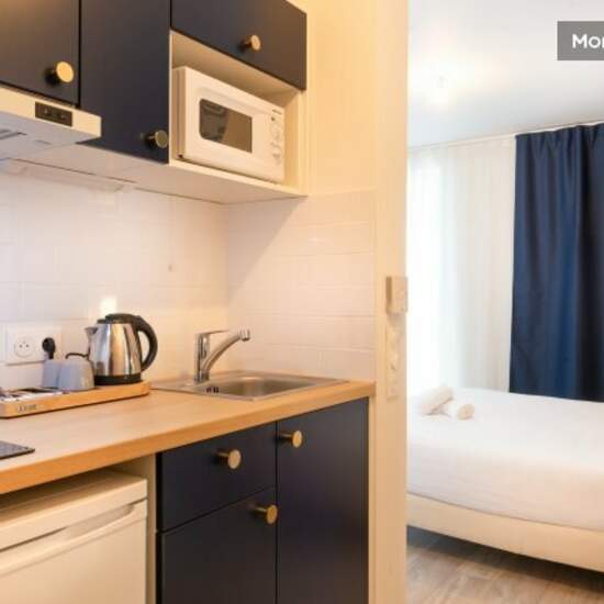 Ideally located in a new district, this residence is situated on the site of the former LE MONDE newspaper. We offer furnished, fully-equipped accommodation including a sleeping area (160cm double bed), desk, storage space, fully-equipped kitchenette (hob, fridge, microwave, crockery kit) with dining table and chairs, shower room with shower and WC, cleaning kit. Numerous services INCLUDED in the rent: - Cleaning of the accommodation once a week, with weekly change of sheets and towels - Unlimited internet access - Fitness room - Bike room -...
