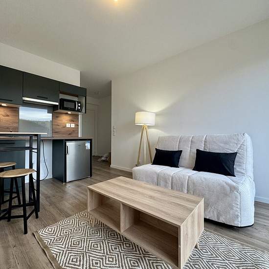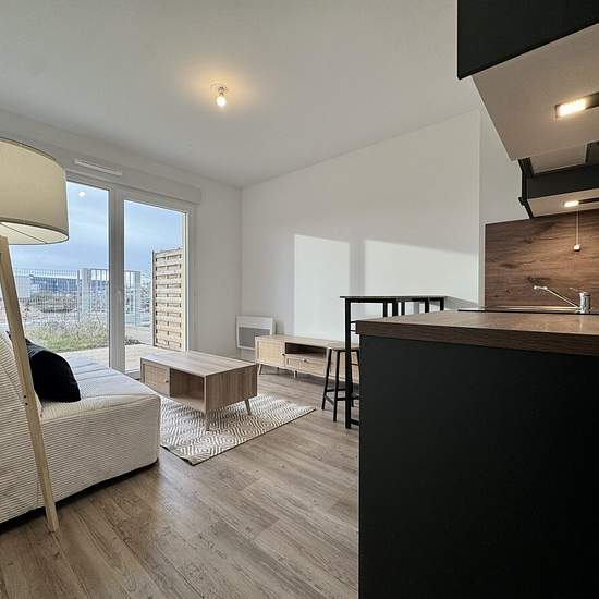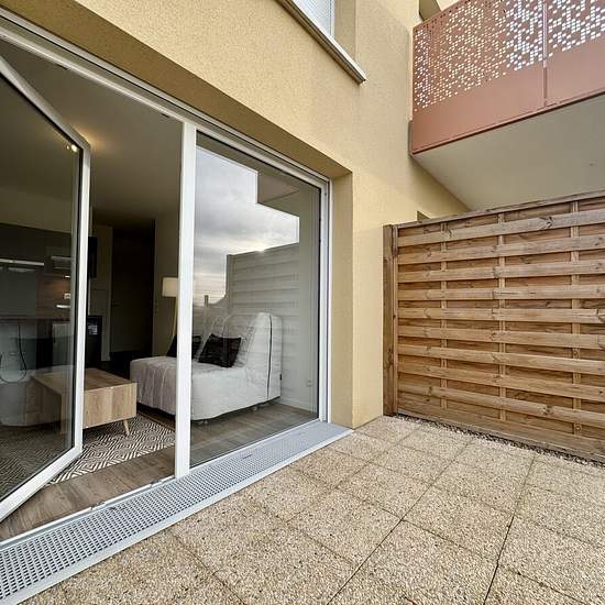 Dans une résidence neuve et sécurisée - Soyez les premiers locataires de ce charmant studio meublé. Il comprend : une entrée avec placard, une salle d'eau avec wc, une cuisine aménagée et équipée ouverte sur le séjour lumineux. Vous profiterez d'une terrasse privative ainsi qu'un jardinet. Une place de parking nominative est également à votre disposition. Disponible dès maintenant ! Honoraires de 280 € TTC à la charge du locataire comprenant 65 € TTC pour l'état des lieux. Loyer de base 480 €/mois. Provision sur charges 30 €/mois, régularisa...