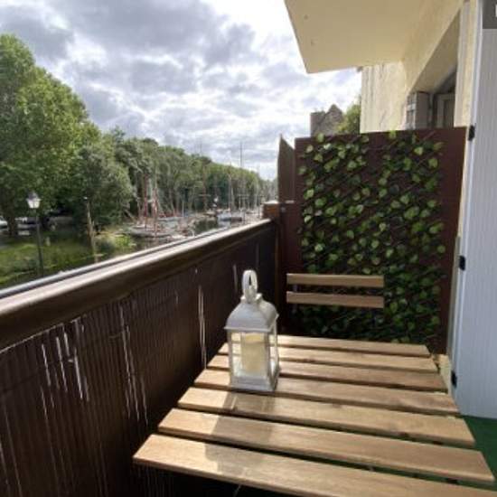 Appartement entièrement rénové sur le Port de La Roche Bernard Venez vous balader sur le Port, profiter des bars/restaurants à proximité, et du soleil sur le balcon. L'appartement est composé d'un séjour (avec canapé convertible deux places), kitchenette aménagée et équipée (frigo, plaques, hotte, four micro-ondes, machine à café), coin nuit avec lit double, salle d'eau avec wc et disposant d'une machine à laver. L'appartement a un accès wifi privé avec TV.