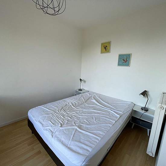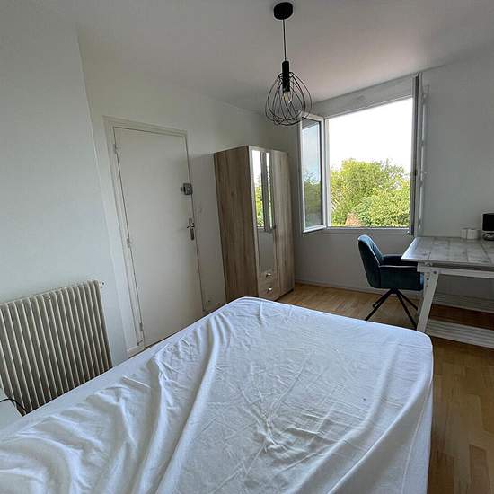 Au 1er étage d'une maison en colocation, chambre meublée de 11m² avec lit double, bureau, armoire de rangement. bail de 12 mois renouvelable. Loyer toutes charges comprises.