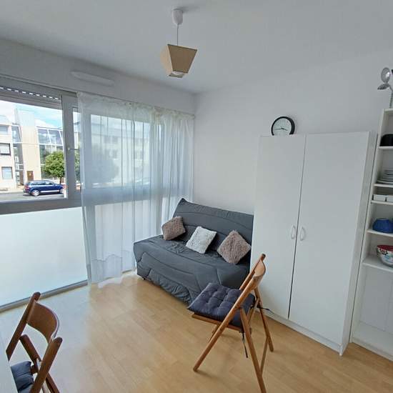 Studio meublé idéalement situé à 5 minutes du quartier des Minimes à la Rochelle, il comprend une entrée, une pièce de vie avec coin cuisine entièrement équipée, et une salle d'eau avec WC. Les charges comprennent l'eau et l'entretien des communs. Libre fin décembre.