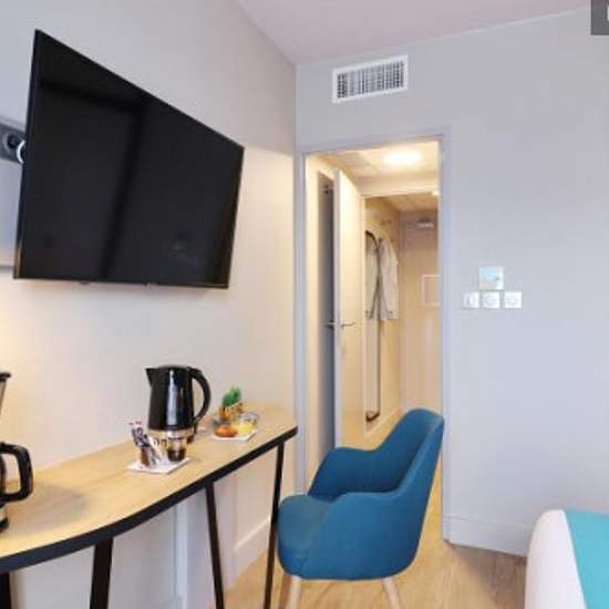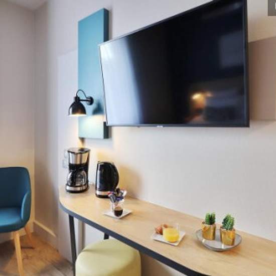 The residence is located very close to the Diagora convention and exhibition center, as well as to the Labège business area. The accommodation is equipped with a fully fitted kitchen for an independent stay (cooktop, refrigerator, coffee maker and microwave). You will have access to a laundry room for an additional fee. Breakfast is served every day but is not included in the rent. It consists of various breads, including gluten-free bread, pastries, and hot and cold beverages. On-site parking spaces are available by reservation and are not ...