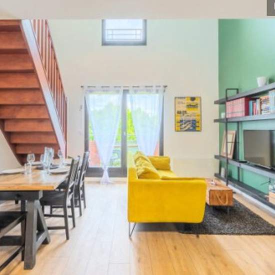 Cet appartement est situé rue Rue Flament Reboux, au coeur de Lambersart dans une résidence calme et sécurisée. Il est au 3 ème étage avec ascenseur. L'appartement est en duplex (2 chambres à l'étage) et dispose d'un balcon. il est fonctionnel et lumineux. Une place de parking privée en sous terrain est à votre disposition. L'appartement est composé d'une pièce de vie avec balcon, une cuisine entièrement équipée et à l'étage deux chambres. L'étage se compose d'une chambre très spacieuse avec un lit double rassemblant deux matelas (160x200) e...