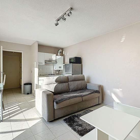 A LOUER STUDIO MEUBLE LE CANNET. Le Cannet, Secteur de La Palestre, Studio meublé dans résidence sécurisée qui se compose d'une entrée avec placard, d'un séjour avec coin cuisine ouvrant sur une terrasse, une salle de bains avec WC. Un box fermé en sous sol complète ce bien. Chauffage, eau chaude et eau froide individuels. L'entretien chaudière gaz est compris dans les provisions sur charges. DPE C Visite Virtuelle :