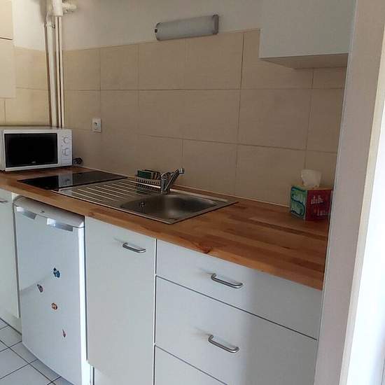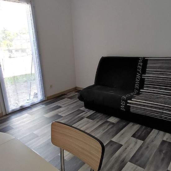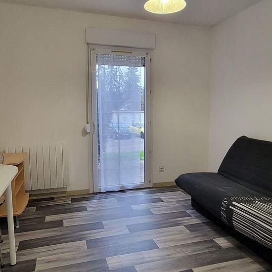 Furnished studio for a student — For rent. In Le Creusot, close to the IUT, in a secure student residence with intercom: a renovated furnished 18 m² studio. It includes a small kitchen (with refrigerator, two electric hotplates, microwave oven, dishes), a separate shower room with WC, and a main room with a clic-clac sofa bed, desk and built-in wall cupboard. Double glazing and PVC roller shutters, mechanical ventilation (VMC) and individual heating. Easy parking with a large private outdoor parking area. Rent: €335/month, including an estim...