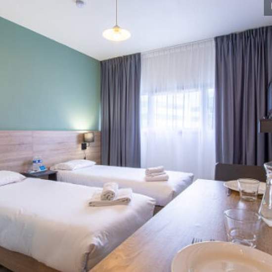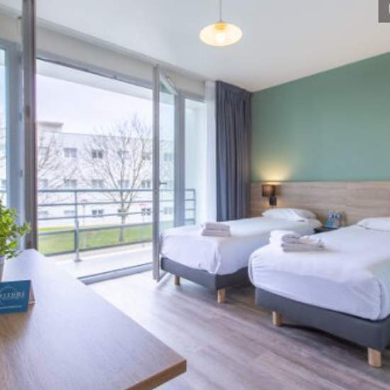 Au cœur du quartier d'affaires Le Mans Novaxis, la résidence vous accueille dans ses 101 appartements, à proximité immédiate de la gare TGV. Tous les logements sont dotés d'une kitchenette équipée, d'un espace bureau, d'une télévision à écran plat et d'une salle de bain privative. Une connexion Wi-Fi gratuite est disponible dans tous nos appartements. Le studio comporte deux lits simples et tous les équipements nécessaires à votre séjour. Les animaux sont acceptés, avec supplément. Disponibilité sur demande d'un fer à repasser, d'un grille-p...