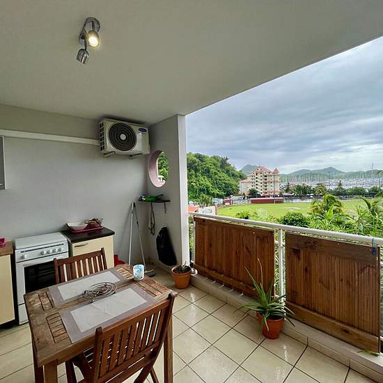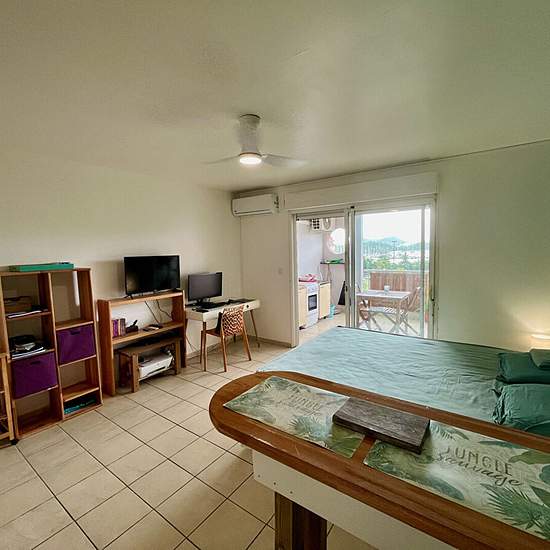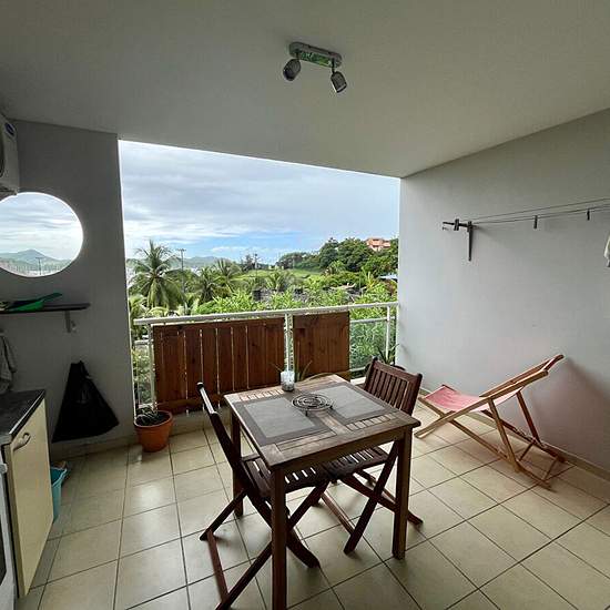 Beau studio meublé dans résidence sécurisée avec vue mer proche Marina du Marin. Entrée avec placards, séjour climatisé et brasseur d'air, coin-cuisine aménagée et équipée (réfrigérateur, four, plaques vitro-céramique et gaz), salle d'eau avec WC, terrasse couverte de 12 m2. SH: 26,49 m2. Logement très propre avec parking privatif. Dépôt de garantie : 1200 euros Honoraires locataire : 344,37 euros (visites, constitution du dossier, rédaction du bail : 264,90 euros, état des lieux : 79,47 euros). Les informations sur les risques auxquels ce b...