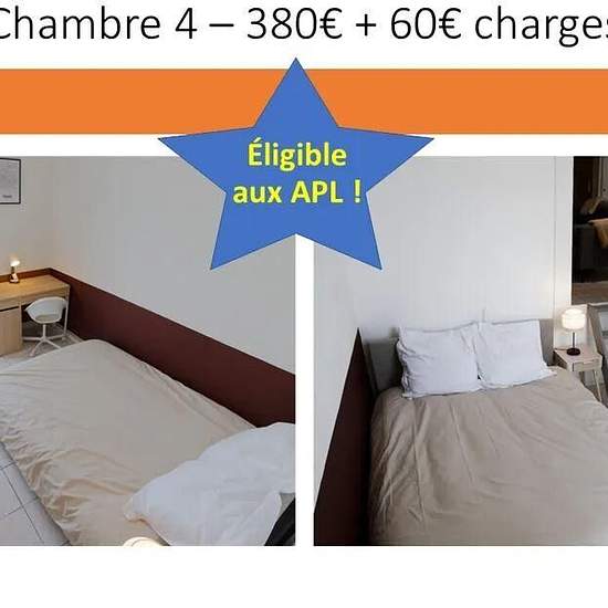 Chambre de 9 m² à louer sur le mée-sur-seine * colocation a melun - tout inclus * eligible aux aides aux logement * adresse : 120 allée de plein ciel, 77350 mée-sur-seine le logement superbe appartement de 5 chambres de 99 m² en duplex, entièrement refait à neuf, meublé et parfaitement équipé. Les autres colocataires sont deux étudiantes et une jeune active. Les chambres chaque chambre offre tout le confort nécessaire grâce à son lit double, son bureau, sa chaise et son placard de rangements. Deux chambres sont disponibles, la chambre 3 (9.5...