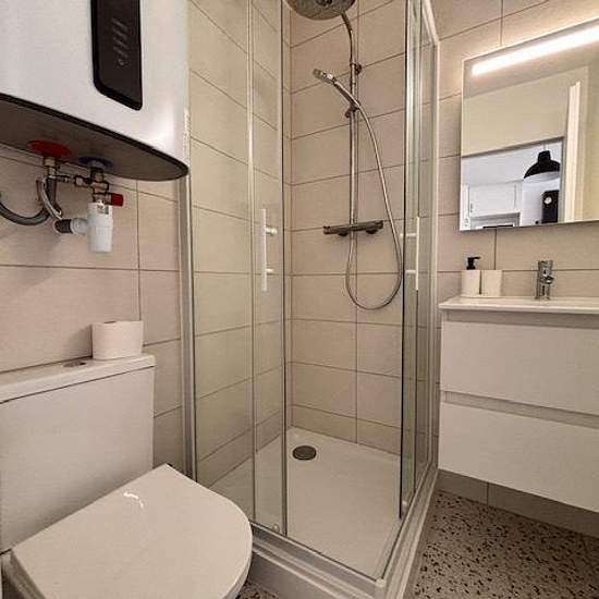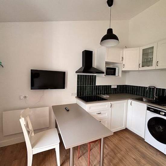 Studio meublé à l'année en rez de chaussée avec jardin clos et place de parking le studio comprend une pièce de vie avec lit 160x190 table chaise télévision meuble de rangement, ouvert sur la cuisine comprenant plaque de cuisson hotte micro-ondes, lave-linge. Salle d'eau avec douche et wc. chauffage électrique. charges annuelles locatives de coproprieté comprenant l eau avec decompteur et revision annuelles : 360 euros. Honoraires de 162 € TTC à la charge du locataire comprenant 44 € TTC pour l'état des lieux. Loyer de base 550 € / mois. Pro...