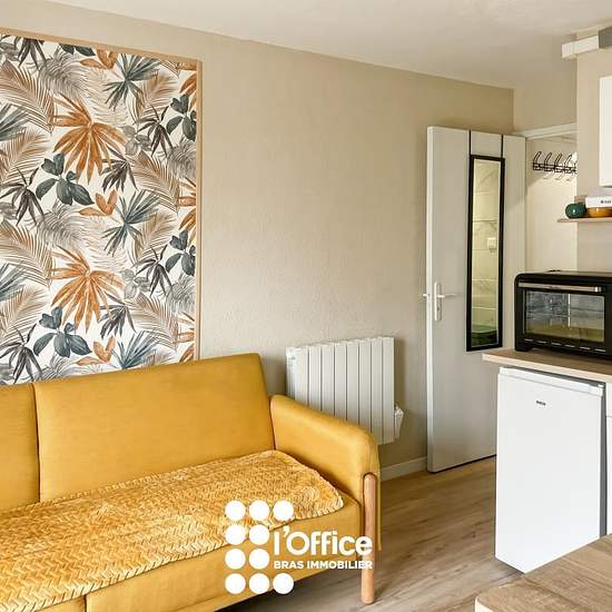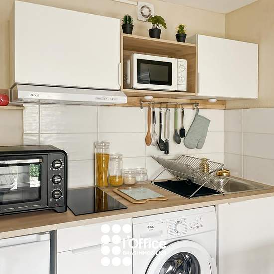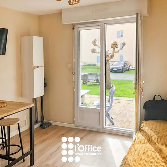 TANCHET LES SABLES D'OLONNES - Référence #384 À deux pas de la plage de Tanchet dans un quartier résidentiel calme, studio meublé de 20.01 m² situé au RDC avec une grande terrasse. Composé d'une pièce de vie lumineuse avec une cuisine aménagée et entièrement équipée (meubles de rangement, évier, plaque à induction 2 feux, réfrigérateur table top, four, micro-ondes, hotte, machine à laver, accompagnée de tout le nécessaire de cuisine), un espace nuit séparé offrant de nombreux rangements dont un lit de 140x200 avec tiroirs, une salle d'eau fo...