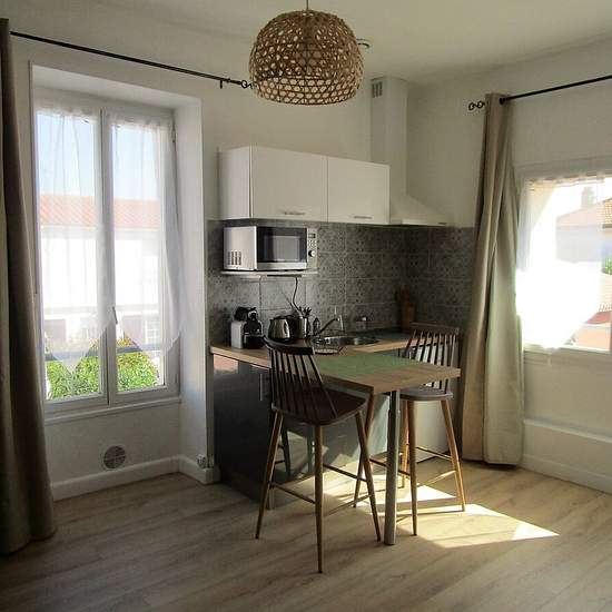 Studio à la chaume, rue de l'Armandèche, pas loin du passeur pour accéder à la plage des Sables d'Olonne. Au 1er étage d'une petite copropriété, il dispose d'un séjour avec canapé lit 140x190, ouvert sur la cuisine qui est équipée d'une plaque à induction, d'un réfrigérateur, d'un micro-ondes et d'une télévision. Pour finir une salle d'eau avec douche et wc. monoproprieté pas de charges locatives Honoraires de 198 € TTC à la charge du locataire comprenant 42 € TTC pour l'état des lieux. Loyer de base 420 €/mois. Dépôt de garantie 420 €. Clas...